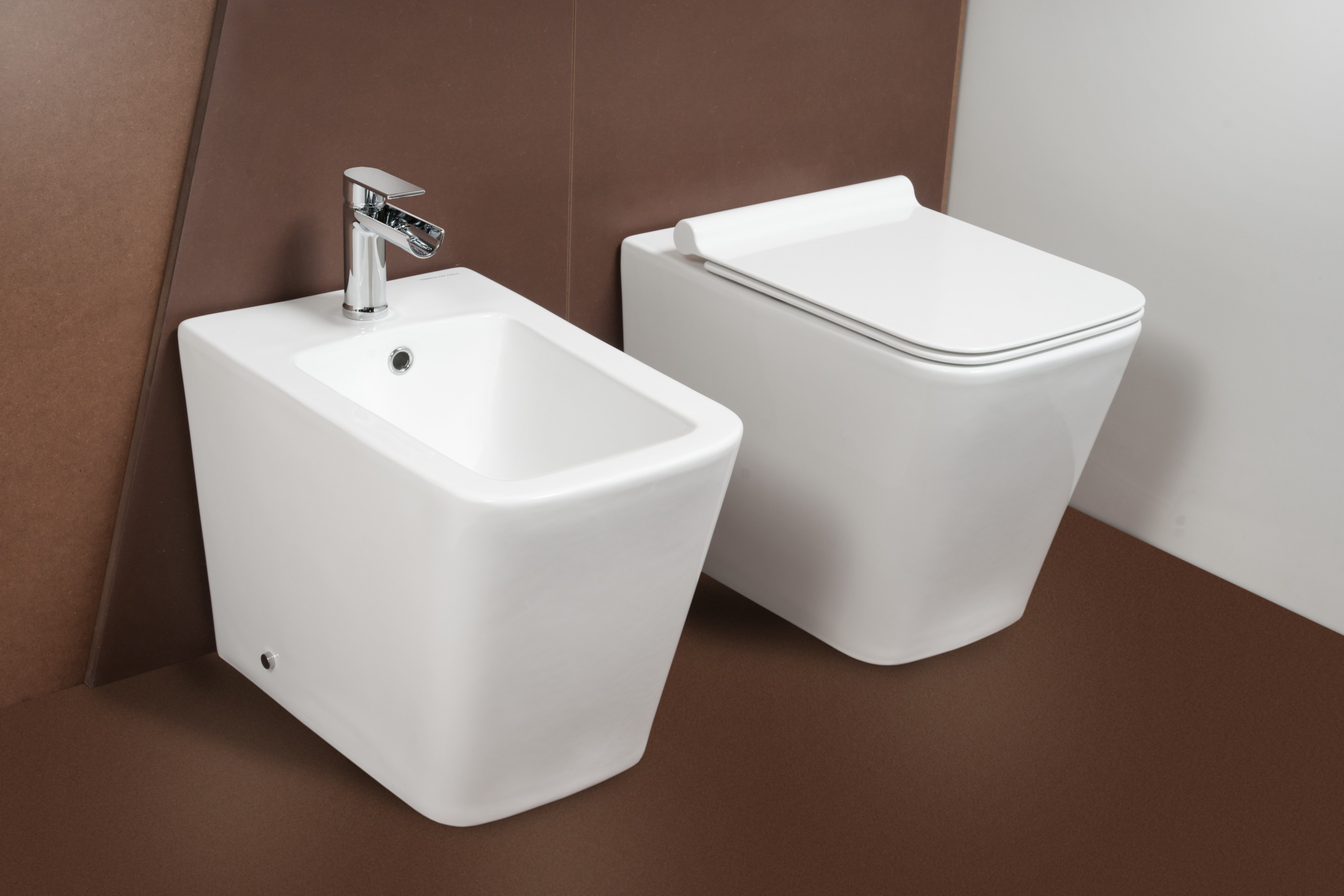 Una soluzione ideale per chi cerca un bidet moderno, funzionale e perfettamente coordinabile con sanitari filo parete dal design geometrico.