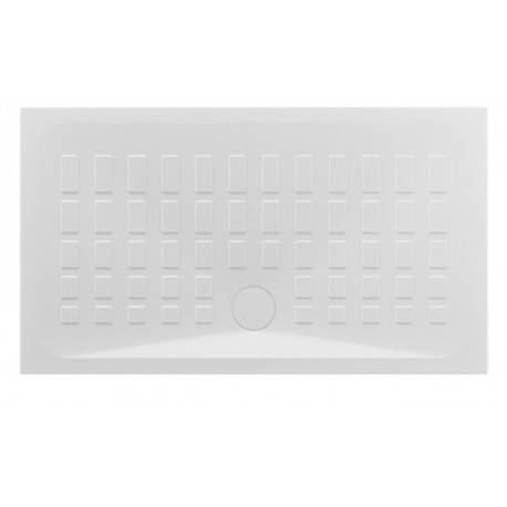 Piatto doccia in ceramica da 4 cm con bordo a rilievo e superficie antiscivolo decorata da un elegante disegno tridimensionale a griglia, che unisce design e funzionalità ottimizzando il deflusso dell’acqua.